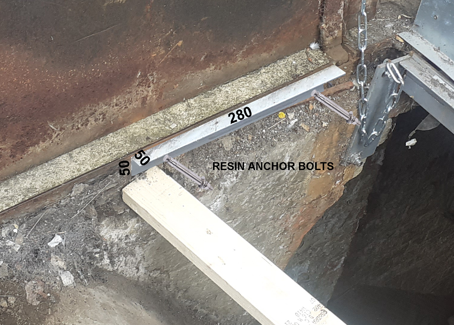 repairs to the cellar door including removing the corroded support strips and replacing them with sections of 50 x 50 x 5mm angle.