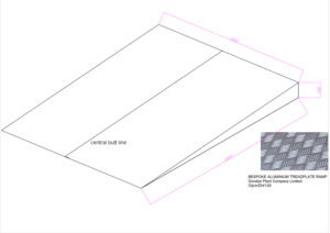 Width 2000 mm, Height 200 mm, 2400 mm depth 3 mm Tread-plate Aluminium.